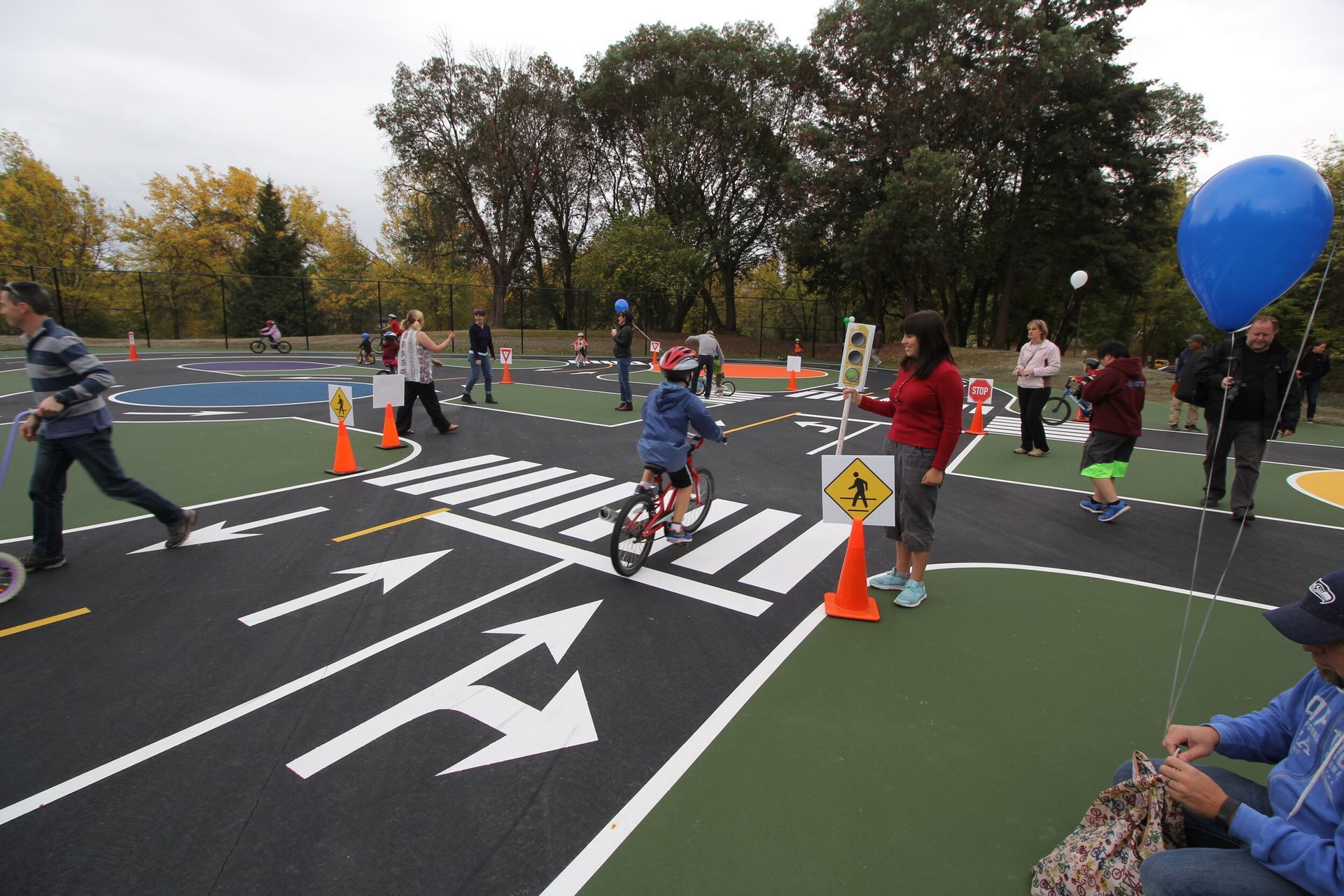 A Traffic Garden or children's traffic park is a park in which children can learn the rules of the road. Traffic Gardens are designed improve awareness of traffic safety among school-aged children. Many enable children to gain hands-on experience crossing in a highly controlled environment devoid of actual motor vehicles. Children are allowed to use bicycles or pedal-powered cars to navigate the streets and operate according to traffic laws. Typically, Traffic Gardens are scaled-down versions of real street networks, with the lane and street-width proportional to the smaller vehicles. Often they include operating traffic signals and during busy times are even staffed with traffic police. Traffic Gardens exist throughout Asia, Europe, and North America. Traffic Gardens in Asia and Europe are focused on traffic safety through pedal-powered vehicles. In the United States and Canada, they use bicycles as well as electric, motorized vehicles.