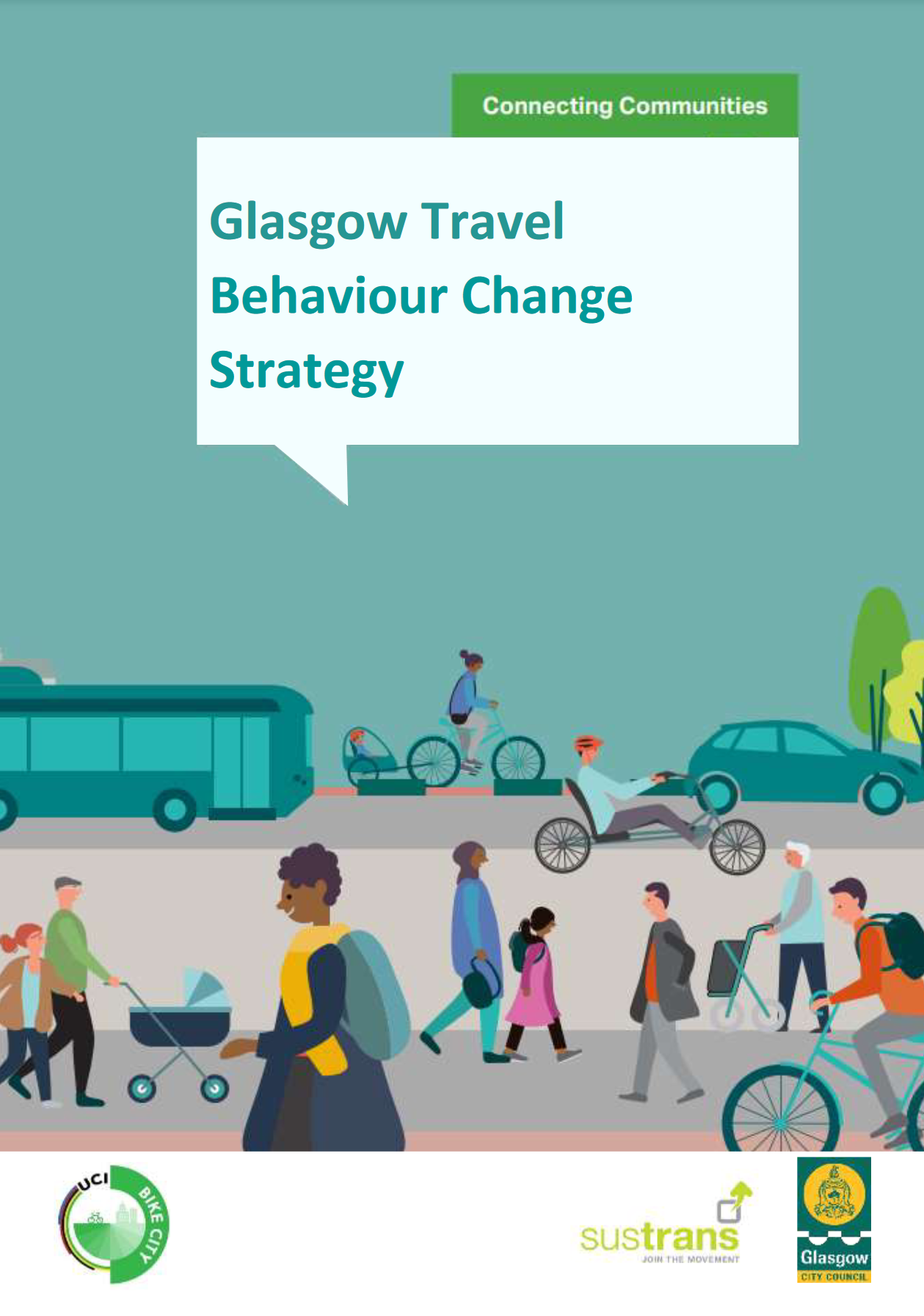 The Glasgow transport strategies detail measures which are designed to increase as much as possible the rates of active travel (walking, cycling, and wheeling), public transport use, and other low-carbon forms of transport such as shared mobility. Simultaneously, measures seek to minimise the use of private vehicles. These strategies recognised the importance of and identified the need for a travel behaviour change strategy. The Travel Behaviour Change Strategy (TBCS) is an integral part of these transport-related strategies, and provides the opportunity to focus on supporting people and communities to travel more sustainably. As well as helping to set the overall course of direction for changing people’s travel behaviour in the City, the strategy aims to be a practical resource and provides the framework for developing project-level travel behaviour change plans.