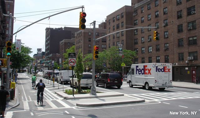 These provide designated areas ahead of stop lines for vehicles at signalized intersections. They allow cyclists to get ahead of queued vehicles during a red light. They help cyclists make turns across traffic and avoid being hit by vehicles turning across the cycle lane, while reducing cyclist and driver delay.