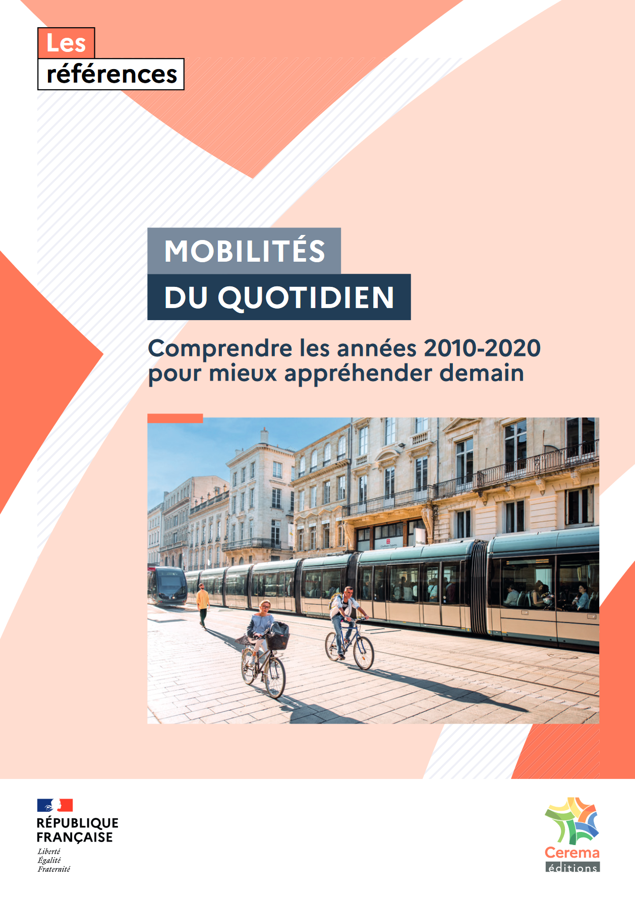 Dedicated to daily mobility in France, with a retrospective look at the 2010 decade, this report follows a series of three ten-year reviews started in the 1980s. The richness of its analysis makes it possible to understand the current dynamics and identify the challenges of the future mobilityt policies. All forms of mobility are covered, from local transport on foot or by bike to delegated digital mobility. All modes of journeys are mentioned: public or individual transport, traditional or innovative. The diversity of the analysis will interest a wide audience ranging from elected officials and technicians from local authorities to researchers and students, via other public decision-makers, consultancies or associations. The analysis has been undertaken from a variety of data sources including home interview surveys.