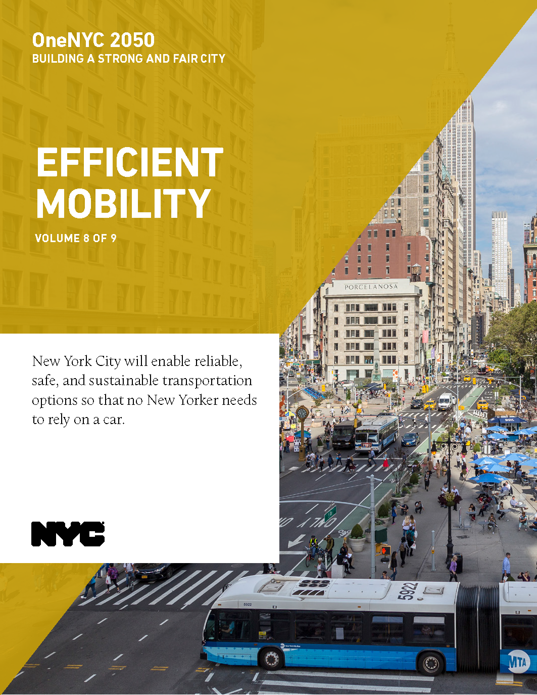 The New York City Urban Mobility Plan forms part of the comprehensive OneNYC 2050 strategic plan which comprises eight goals and 30 initiatives to secure the future of New York City. Approximately 57 percent of more than 14,000 respondents cited transportation-related concerns as among the city’s most pressing needs. Although 64% of New York residents live within 1/2 mile of a subway station and 97% live within 1/4 mile of a bus stop, many were concerned about the reliability and efficiency of the subway system, along with the need to improve the speed and frequency of bus routes, support mass transit, reduce congestion, make streets safer and transportation more accessible. With the City’s population projected to exceed 9 million by 2050, the mobility plan is designed to enable reliable, safe, and sustainable transportation options so that New Yorkers do not rely on cars. The city will reduce congestion by managing demand through congestion pricing.
